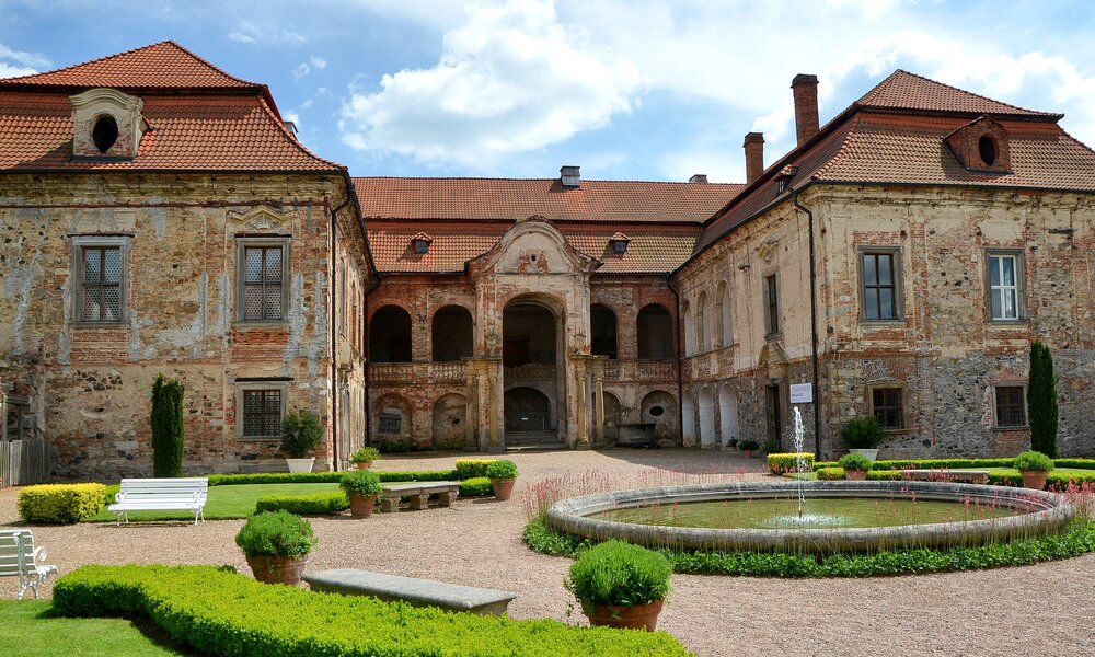 Prohlídková trasa s průvodcem vede obnovenými a historickým mobiliářem vybavenými pokoji přední i zadní budovy zámku. Cílem výkladu je seznámení návštěvníka s historií objektu, jeho významem a s postupem obnovy zámku. Prohlídka vrcholí v nově restaurovaném tanečním sále.