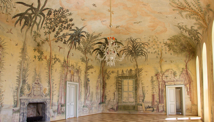 Tour of the refurbished and restored salons in both wings with a guide. The rooms have furniture from the late 18th century and demonstrate high aristocrat living at a country residence. The tour also includes a visit to the recently restored ballroom with exotic wall paintings by Anton Tuvora.